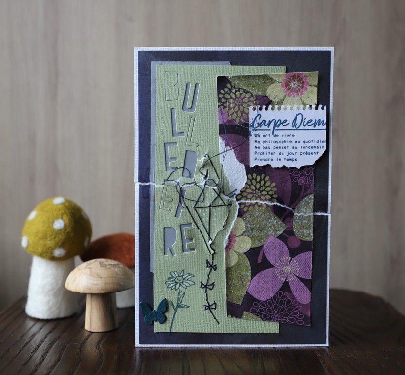 Je ne sais pas j'ai bloqué sur une histoire de papier foncé, de gros motifs, etc. J'ai donc tout recommencé en fouillant mieux dans mon matériel et tout est venu en partant de ce pochoir: